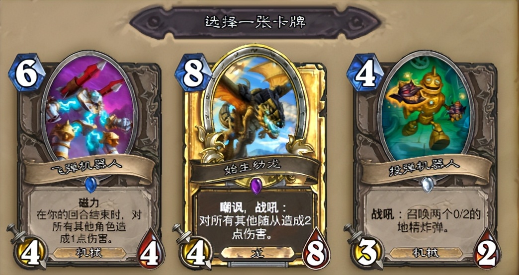 因为这次卡池给到了安戈洛和砰砰计划的卡,所以我们可以尽可能倾向于机械一些,安戈洛解场卡很多,适当抓取之后可以主抓机械,配合目前骑士的新卡有着奇效!而且磁力效果做大怪也非常方便,在中期6~8费的时候打死对手或者做出一个相当难处理的磁力大怪也是完全没问题的。