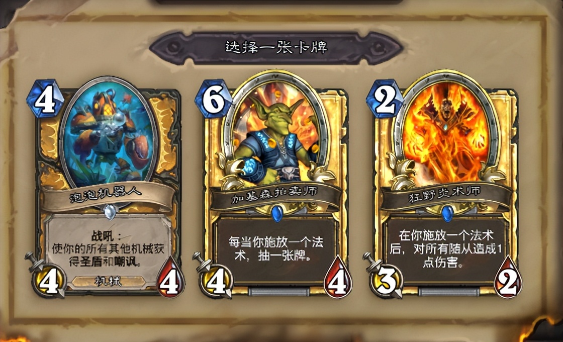 首先给到一个比较经典的当前版本抓位,我一开始也是秒选炎术士(那把10胜结束),打完之后发现骑士很多法术在这个环境都比较鸡肋,带炎术士并不能起到很好的解场效果,在很多时候只能当成站场补点打出,相比之下还不如2/3的白板怪兽,所以这里拿444的机器人最好,因为目前骑士机械牌很多,中立也有不少,很多时候一旦吃上圣盾和嘲讽的buff之后将会直接翻盘。