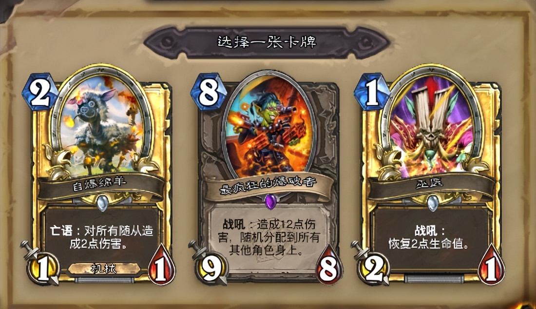 不过玩骑士的老哥们有一点需要注意,我测试的这么多把发现骑士本身解场卡特别难抓(不知道是不是我脸太黑了),所以在有自爆绵羊或者最疯狂的爆破者这种卡时,我基本上都会抓上一手,一套卡组30张卡至少要保证3~4张左右的群解才比较安全。