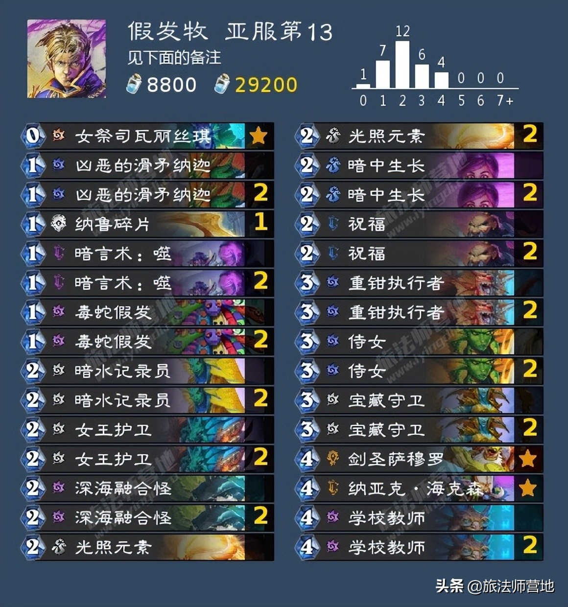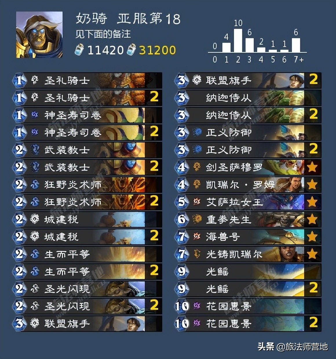 在补丁前不温不火的奶骑在小版本收获了纳迦侍从和光鳐这两个新玩具,也因此终于满编了神圣寿司卷,然后继续不温不火……在我看来奶骑虽然有解场、有节奏、有斩杀,但和王座上那位红不拉几的兽人比起来好像又都差了点意思,热度不高也很正常。