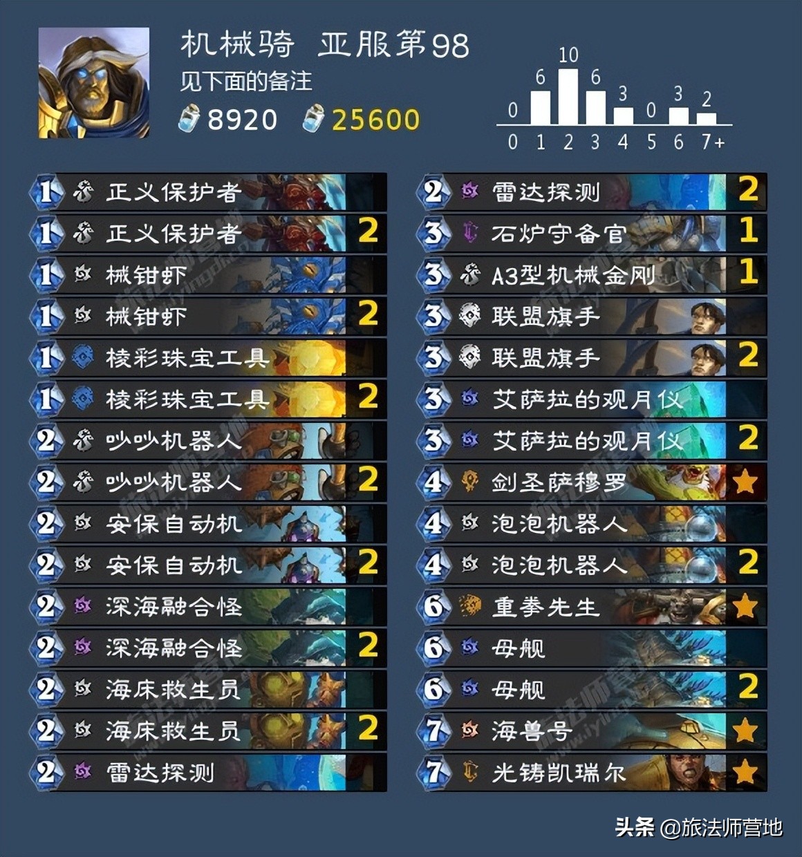 一位哲学家曾经说过:“机械骑打战士一半是因为不防乱斗翻车的,一半是因为防乱斗翻车的。”终于,随着有更多的战士不带乱斗,机械骑不用陷入败北与白给犹豫与果断的两难选择。不过机械骑的问题和不超凡的德鲁伊有点像,打战士以外的对局比较吃力,不能一费提刀然后圣盾跟上的话很难赢贼法瞎。