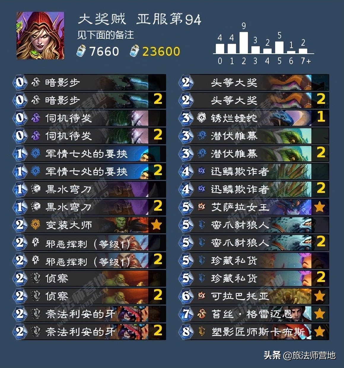 -暗影步*2、军情七处的要挟、邪恶挥刺(等级1)*2、锈烂蝰蛇、潜伏帷幕*2、艾萨拉女王;