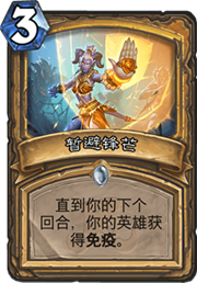暂避锋芒:我个人比较喜欢称其为“pause”(因为老檀)。这张牌主要是用来回合数的,效果很好,但是由于卡位不够,我只带了一张,个人认为一张足矣,如果你所处在的环境牧师较多,可以考虑多带一张。