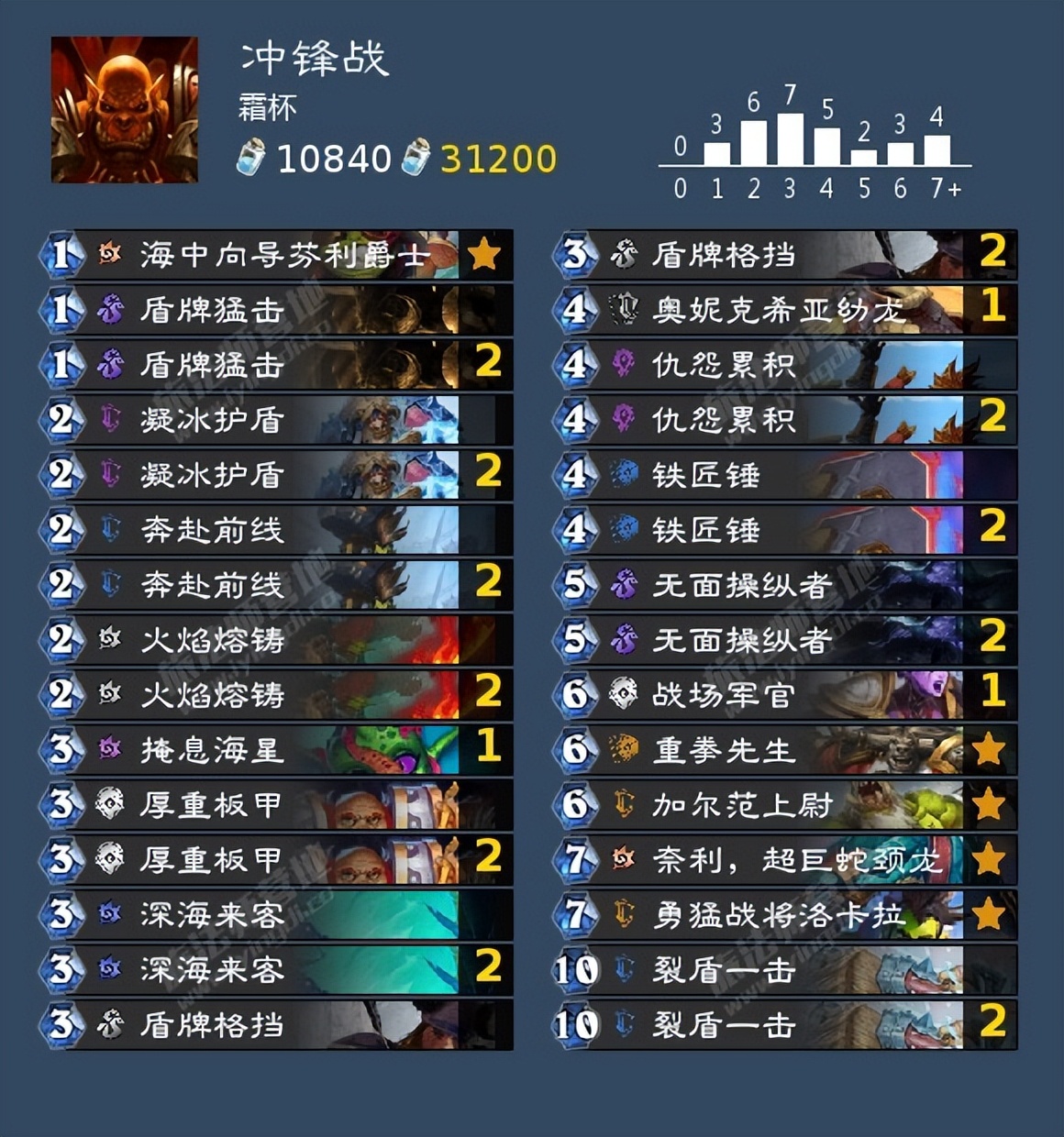凝冰护盾与裂盾一击的combo现在成为了战士玩家屡试不爽的清场手段。主要也是因为真的容错率太高了,所以这套卡在护甲再多的情况下选择了不带绝命乱斗,主要还是打进攻的,裂盾与叠甲够苟就行。
