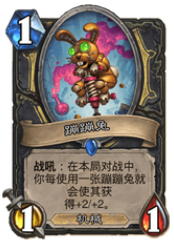 不久前,炉石传说迎来了一波版本平衡,许多卡组被削弱,同时又有一些卡牌得到了加强,这也是炉石为数不多的几次对卡牌的加强,这一波加强的卡中就有我们几天的主角——蹦蹦兔,兔兔贼的卡组早起有人使用过,但是强度并不高,主要的原因是节奏慢、成型慢。并且防御能力也不行,导致仅仅是昙花一现,不过在这个版本变动后,蹦蹦兔从2费变成了1费,加上这个版本新发布的几张新卡的帮助使得,兔兔贼得以重新加入天梯,并且成为了这个版本的明星卡组。