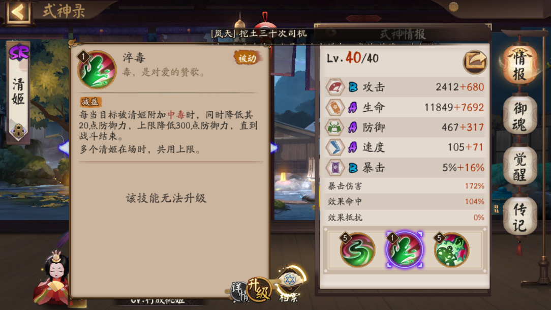 今天要介绍的式神是清姬虽然在面板上平平无奇,但是其功能性很强,