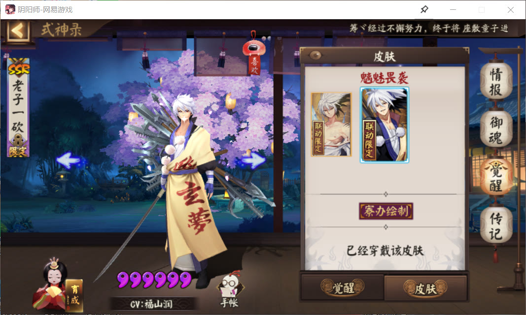 这次联动唯一的SSR,也就是这部动漫的主角鬼灯。现在仍旧活跃在各大斗技赛场,有着非常不错的表现。
