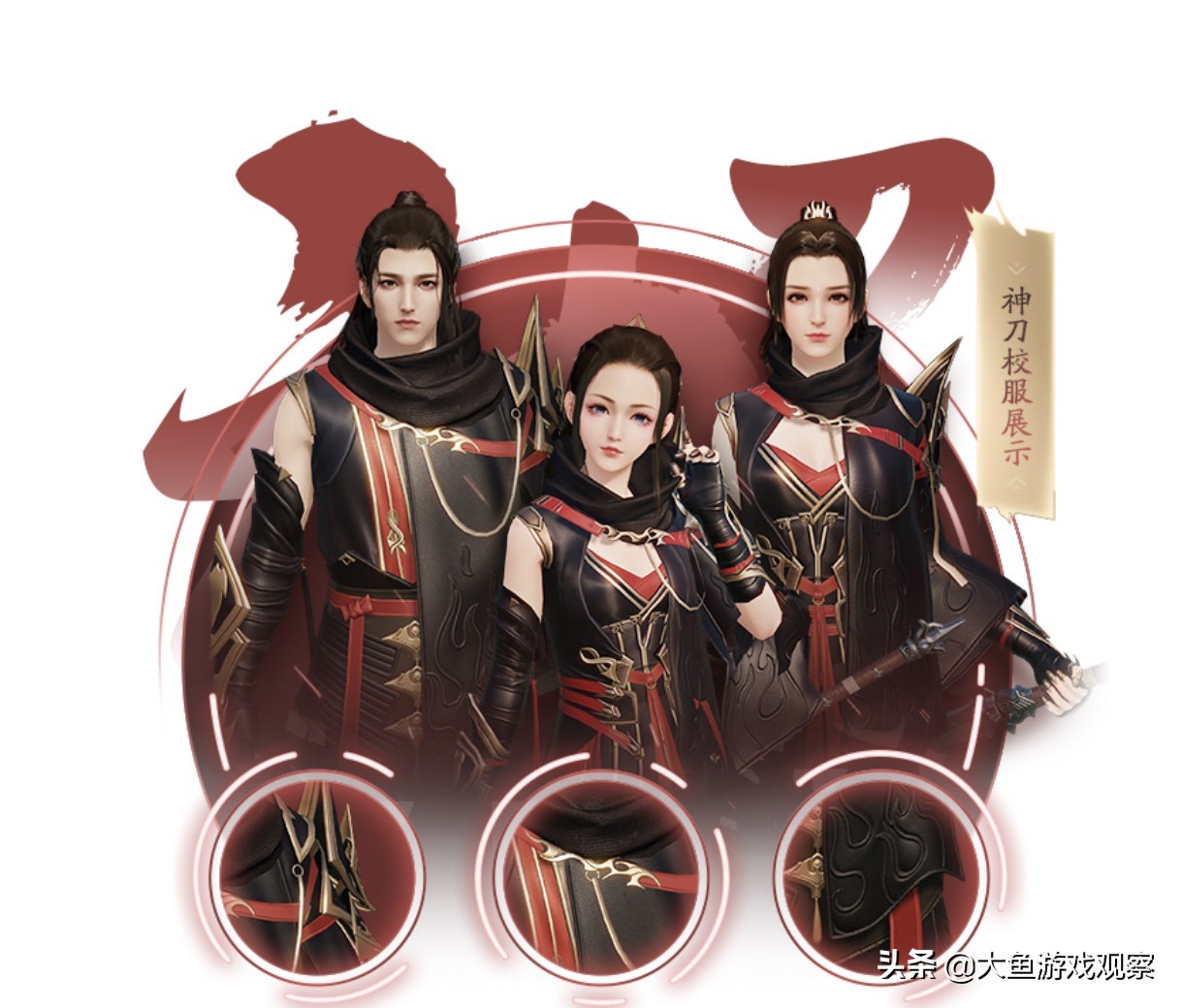 首先神刀作为最适合闯荡江湖的好汉职业,在校服的设计也继承于此,外观以红色搭配黑色为主色调,突出神刀门派这种英气果敢,还有上面点缀的金属挂件配合红色浮现出一种低调奢华。