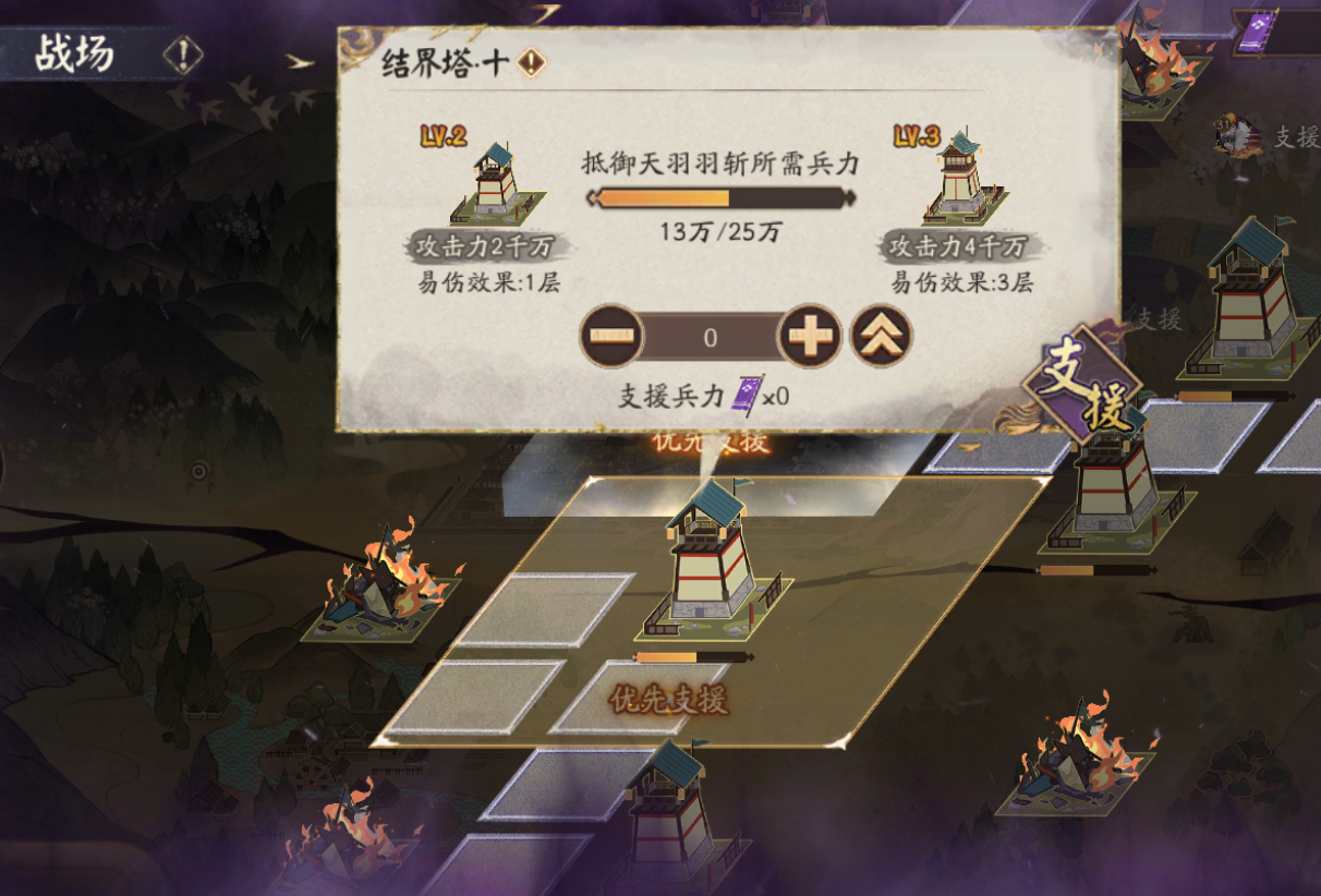 活动由两大部分组成,分别是战斗与任务。任务很简单,用通俗的话来解释就是捐赠物资。地图中会存在源赖光修建的防御塔,而痒痒鼠们则需要利用战斗中获取的“军粮”来让防御塔更具威力,这样才能抵御天羽羽斩。如果防御塔被毁掉才会上涨进度,反之则平安无事。