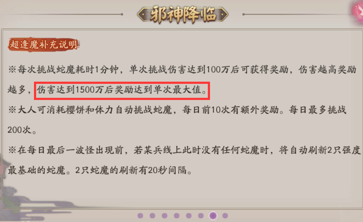 战斗主要以两个方向为主,抵御小怪的个人战、以及需要阿修罗团队战。我们先来说小怪战,持续时间为60秒,只要在60秒内打出最高伤害即可,按照体验服给出的标识来看痒痒鼠们只需在小怪战中打出1500W伤害就能解锁最高级的奖励。