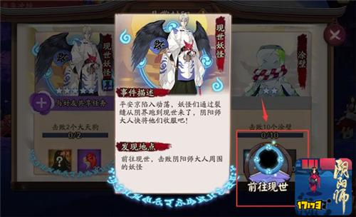 1、系统有小概率在悬赏封印中刷出【现世悬赏】榜单(体验服5.10更新),需要前往现世击败附近的妖怪。