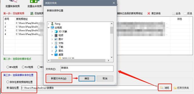 选择完格式,我们再选择文件保存的位置,点击“浏览”会弹出一个窗口,可以在里面选择保存地址,也可以新建一个文件夹保存文件,选择完点击“开始转换”。