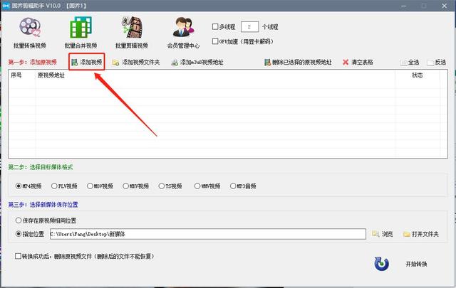 在软件的主页,我们可以看到这个软件是有操作的提示步骤,所以我们接下来就是要添加原视频,点击“添加视频”。