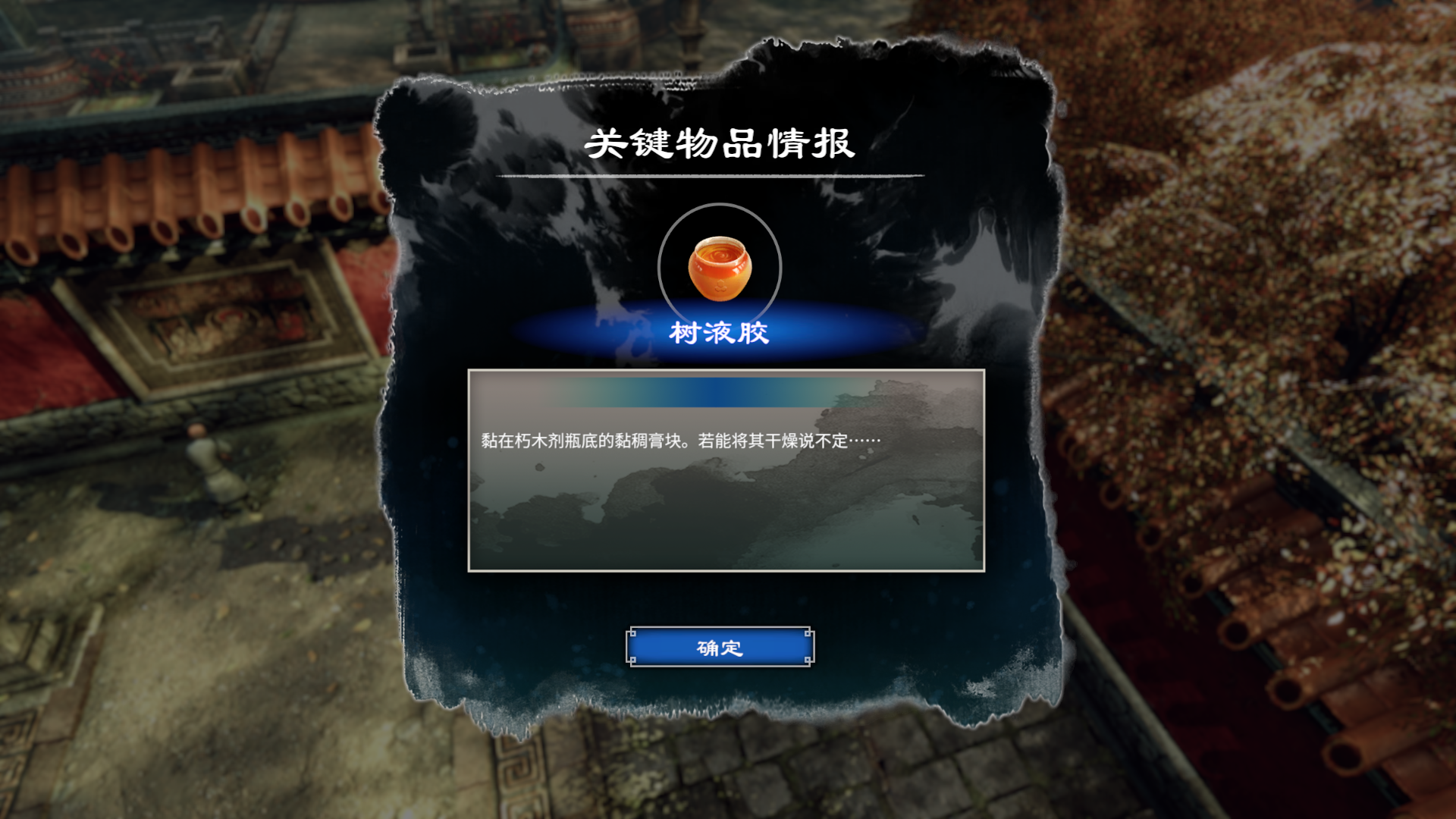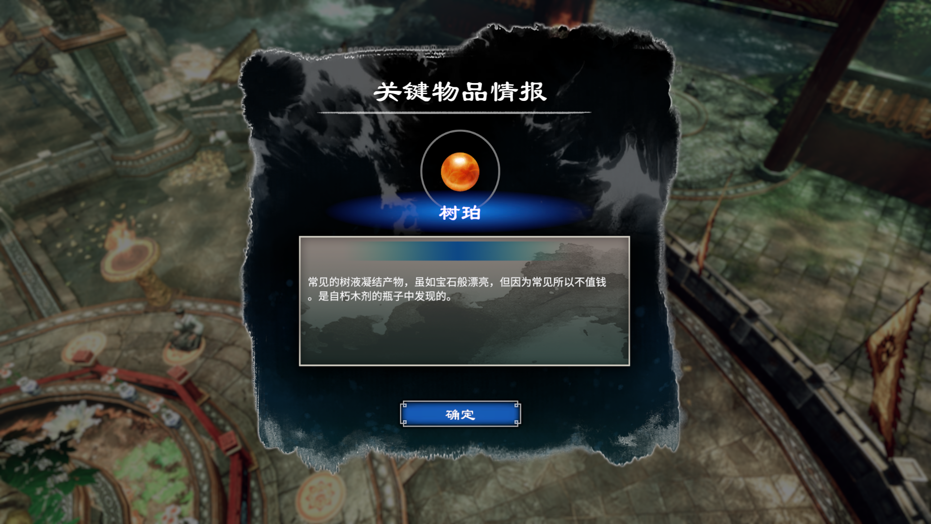 关于摩尼教的物品收集就完成了。最后还有一个黄玉钥匙,这个是你进入大殿的主线任务需要的道具,那里你将会出示绿火烧伤的证据,还有养生丸。你只需要在出示养生丸之前先出示黄玉钥匙就可以了。烧伤证据>黄玉钥匙>养生丸