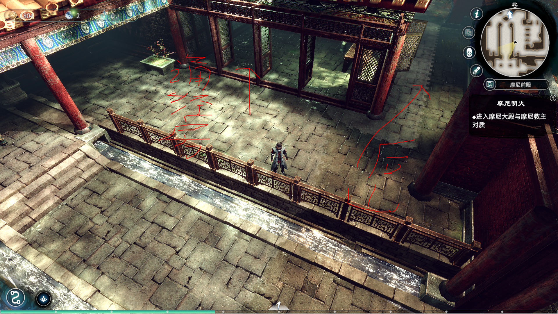 摩尼教按以下步骤进行,可以说是行云如水的完成主线任务并且收集完所有物品