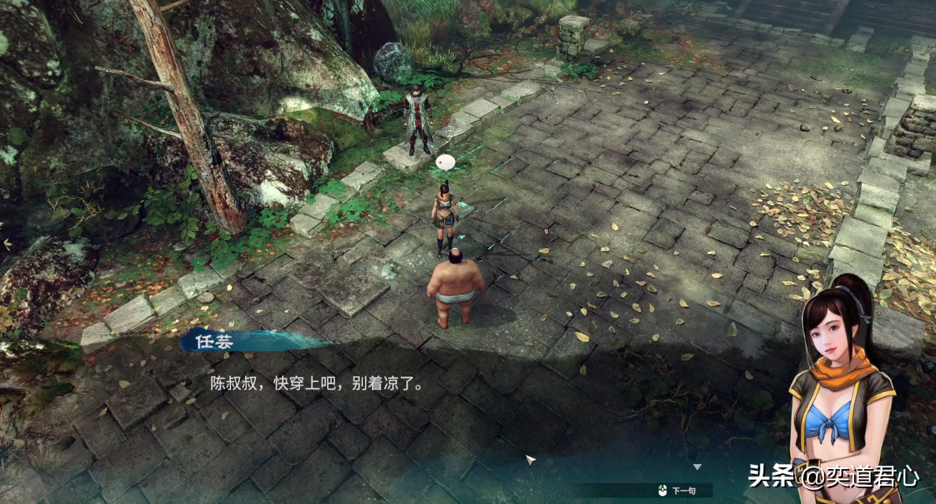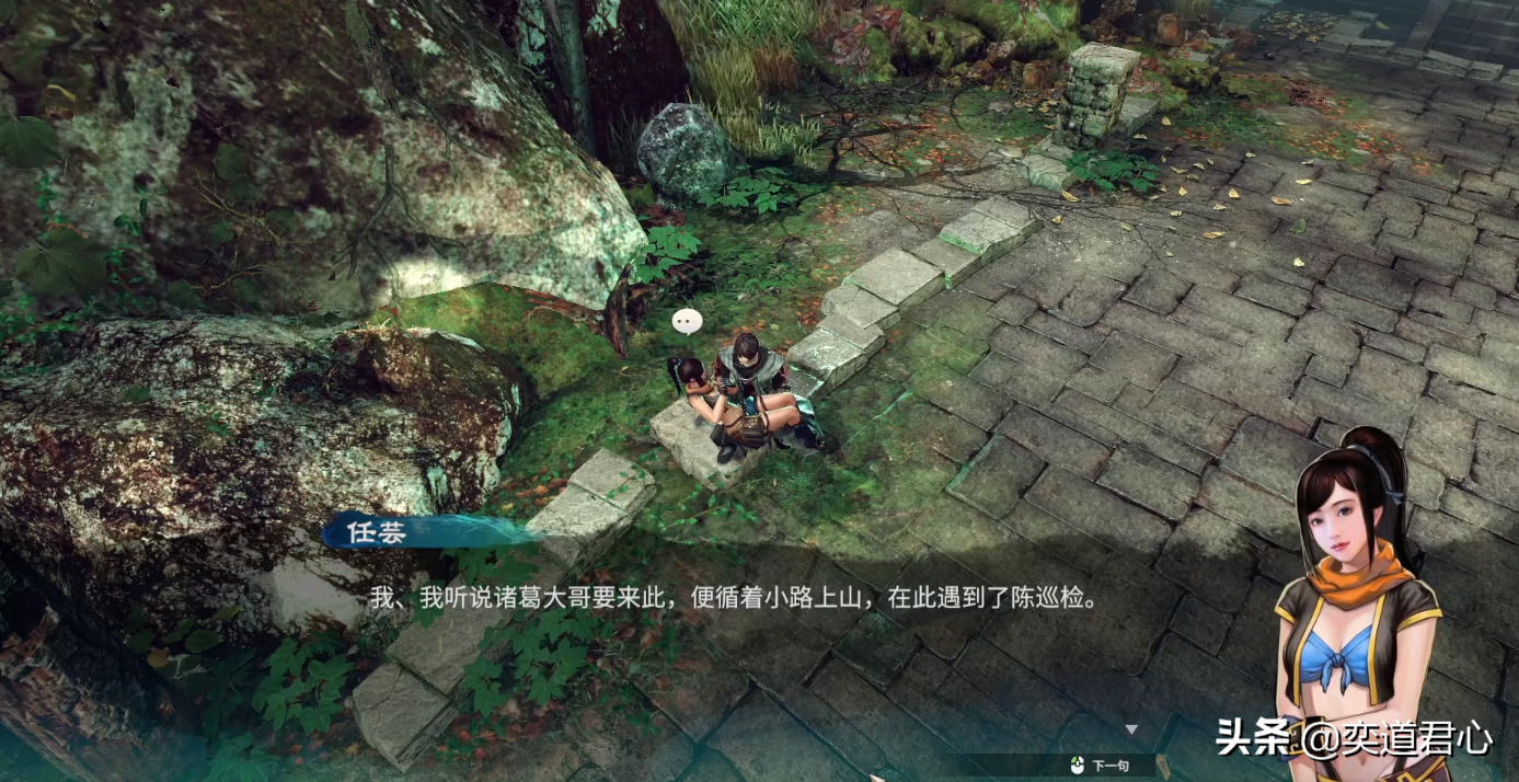 遣散了山贼之后,诸葛羽继续沿着山道搜索陈巡检的踪迹,却发现任芸(青梅竹马的任宁的妹妹)正挂在一棵树上。诸葛羽一个轻功就上去点亮了公主抱,搞得妹子一阵小鹿乱撞,原来她也是跟着诸葛羽上山来找陈巡检的。任芸虽然功夫不如诸葛羽,但是运气却爆棚,比诸葛羽先找到了陈巡检。因为被摩尼教的邪火烧毁了官服,陈巡检只能光着身子,任芸是为了给陈巡检拿挂在树上的山贼衣服才遇险的,好在人没事衣服也取到了。