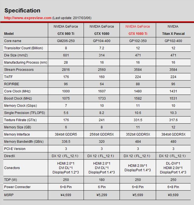 在GDC 2017上,NVIDIA正式推出了地表最强的游戏卡GTX 1080 Ti,采用与Titan XPascal一样的GP102核心,3584个CUDA核心,搭配352bit 11Gbps GDDR5X显存,整体规格几乎一致,但是核心频率有所提升,因此游戏性能追平Titan X并不是件难事,而且售价仅为5699元,价格只有Titan X六成,不可不谓是一款良心产品。一如既往,我们汇总了各个媒体的关于GTX 1080 Ti,供大家查缺补漏。有其他想法的欢迎找小超哥(微信:18680462854)详聊~
