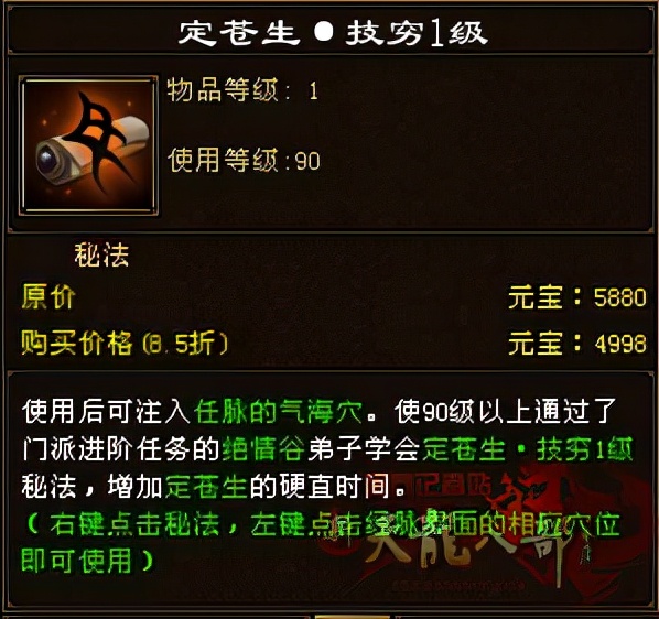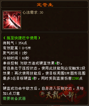 单体控制技能,后续还可以触发2段效果,打出直接伤害。结合状态技能“挥斥方遒”,有一定概率将定苍生瞬发。从前两个技能,我们也可以看出,绝情谷的技能都是一环扣一环的,非常讲究操作,不比桃花岛来得简单。