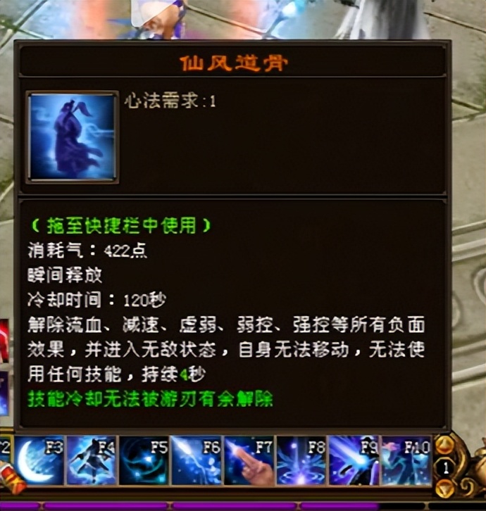 首先是武当的“仙风道骨”,该技能从原先的无人问津,如今摇身一变成为武当,哦不,可以说是放眼整个江湖门派中最强的技能了。该技能可以解除了逍遥的“画地为牢”技能的所有控制技能,包括重楼的控制效果,对!你没有听错,是连重楼装备的控制效果都可以接触!120秒的CD虽然不能被游刃有余重置,但是瑕不掩瑜,这个技能已经非常强大了。