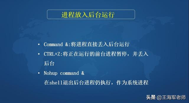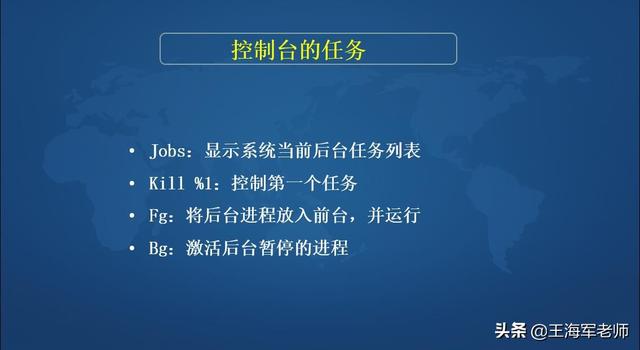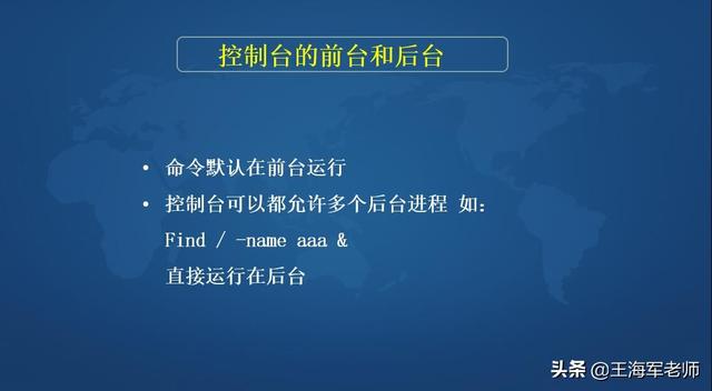 例如,当你已经在前台启动了一个命令时(没有在此命令后面使用&),意识到这一命令将运行叫长一端时间,但此时还须使用 shell。在这种情况下,可通过在按下 Ctrl 键的同时按下 Z 键挂起当前运行的进程。此时你即可以使它长期挂起,也可以通过输入 bg 把这一进程放到后台运行。这样便可以把 shell 解放出来。从而用于其他命令的执行。