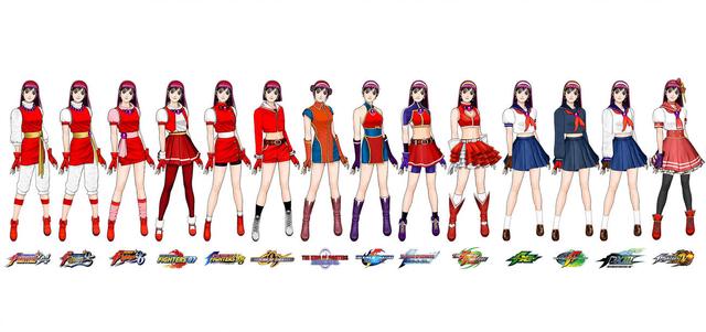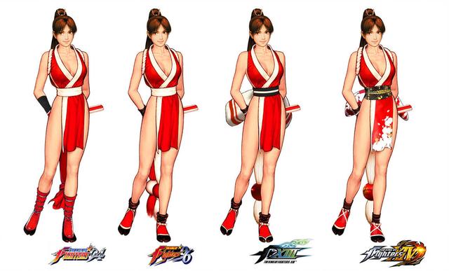 虽然画风不同但穿着几乎一直都保持着最初的形象。即使是不知火舞,也仅仅是战斗服上面多了一点图案而已。