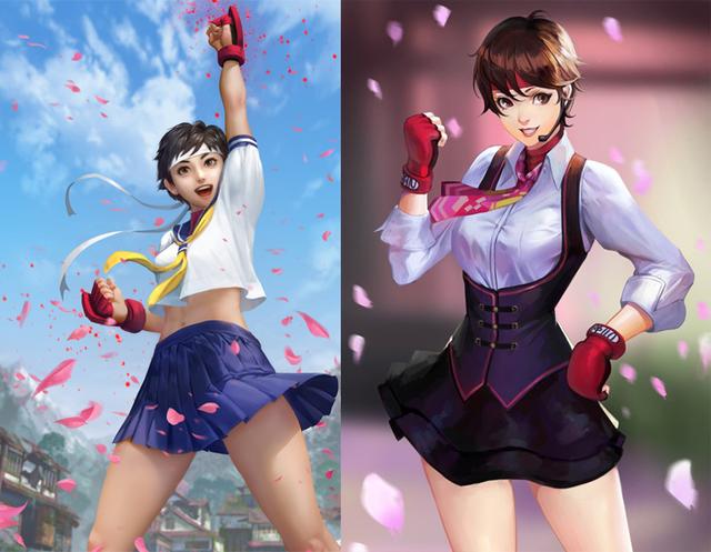 在《街头霸王V》之前她一直都是高中生的身份,因此随时都是穿的学生装。在《街头霸王V》时期已经毕业了,则穿上了更加休闲的服饰。