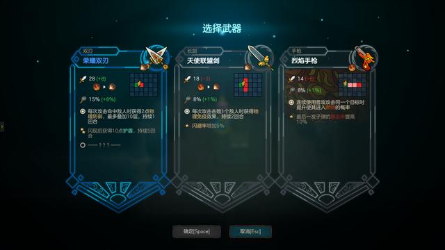 每种武器除了不同的伤害之类的属性外,还会有不同的特殊效果,比如对最远距离的敌人造成额外伤害,造成眩晕效果等等。而为了武器的平衡,远程武器需要在子弹耗尽之后花费一个回合来装弹。