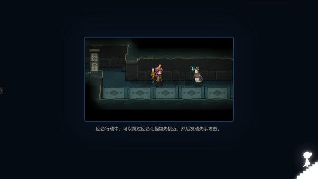 当然,回合的触发也并非必须得是你来我往,如果恰好玩家处于非常有利的位置,只等怪物向前一步的话,也可以选择跳过回合来实现"敌动,我不动"的以逸待劳。
