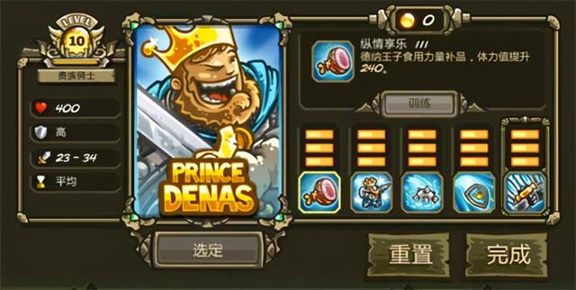 这货定位很明确,刺客一枚,十步杀一人,千里不留行。普攻攻击伤害不高,只能近战,但攻速是所有英雄最快的,很好弥补了他攻击量疲软的尴尬现状,除开大招,不能攻击空中目标真是个小遗憾,aoe伤害也过的去,大招秒杀,3代英雄里面最牛逼的一个秒杀技,其他英雄和他没法比。此技在手,注定雷吉森的不平凡。前期这货输出并不突出,怪物血量不高,后期大招瞬间将他的总输出拉到了顶尖水准,很多玩家都冲着这个大招试玩他的,小弟开始玩的时候第二个英雄就是他。满级600血,无甲,看着应该很脆,但有个吸血技,堪称一座固定兵塔。使用多数是丢在交通要道上使用,无脑丢大招就OK,操作简单,后期不建议使用,大招高潮后对整个战局影响作用稍小,局限性拉低了一些,掉了不少分。在此我给他的实用评分4.7,和游侠艾瑞丹一样7.贵族骑士-王子迪纳斯