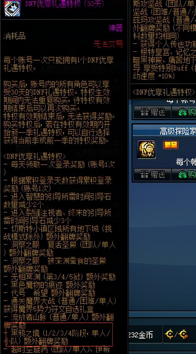 购买礼遇特权之后,勇士们会在许多部分获得额外收益,其中包括黑鸦之境(1/2/3/4阶段,单人/小队)额外翻牌奖励,这也是一个增加遴选材料获得的方式,不过角色多的小伙伴购买更加划算。