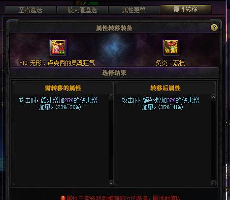 由于现在的遴选可以继承,所以勇士们这个时候多余的绝望矿石不妨在其他装备上遴选,这样说不定一发入魂跳出满属性的词条,之后继承过去,也能够加速角色遴选的毕业。