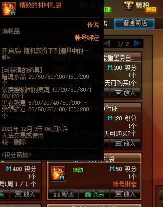 在积分商城的普通商店里,勇士们可以花费50积分兑换”精致的材料礼袋“,其中有几率开出绝望矿石,不过礼袋到9号就会删除,想要兑换的勇士们抓紧时间了哦!