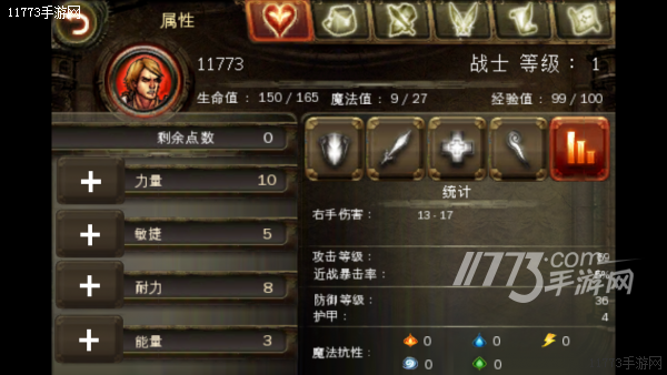 战士:力量与耐力是战士最为重要的属性,没有足够的力量无法装备重型武器,这对战士来说是最致命的!