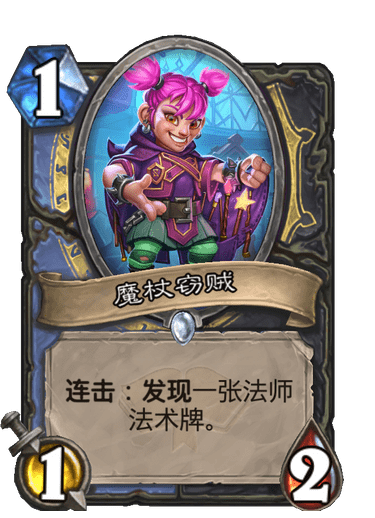 虽然传统的盗贼前期最重要的是节奏,在运营的同时消耗对手的血量是传统节奏贼的战斗方式,不过这套卡组中的盗贼则注重一击必杀,前期只需保证场面以及尽快检索核心牌即可。黑水弯刀以及魔杖窃贼这两张卡是当前版本中比较实用的卡牌,前期留手黑水弯刀以及魔杖窃贼来观察对手究竟是快攻还是慢速卡组,如果是快攻的话,黑水弯刀就可以发挥出其应有的作用了。如果是慢速卡组则将黑水弯刀交易进入卡组,之后减少手牌中法术的法力值消耗。而魔杖窃贼同理,根据快攻还是慢速来决定自己前期检索的卡牌,如果起手够顺甚至可以保留直伤法术来保证后期的斩杀。