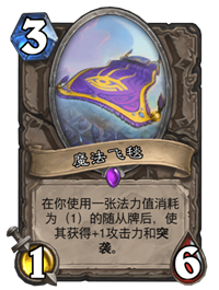 飞毯的出现让我放弃了以往带南海的那套奇数贼,因为南海的主要作用是在三费时为自己场面的海盗加buff站场,但是当前环境我们在三费时很可能只剩下一个海盗甚至不剩下海盗,因此这张卡更多的时候像一张33的白板,很蠢。所以我选择了更加灵活的飞毯,大屁股可以对付铺场卡组,一旦对手解不掉,自己还可以在四费打出完美的铺场。