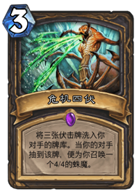 一半是魔块术一半是弃牌术,我们对阵魔块术的时候要注意他的黑暗天际、灾祸和亵渎。弃牌术的时候就很麻烦了,但是有一个我自己对阵的观点,各位谨慎采纳。113小鬼,在场面劣势时我们可以不解,有着221专卖商和狗蛋之手的弃牌术很容易让自己的手牌饱和,因此,我们可以选择一种奇怪的思路,不从场面施压,而是尽可能走脸,除了在场面优势的情况下或者均势时成长型的怪要解,别的情况下我们可以选择不理会,在67费费用较饱和的情况下打出危机四伏,让他在快速吃到疲劳的同时间接的为我们铺场,当然这只是我的个人思路,而且场面劣势多半也打不了(狗头饶命)起手留卡:一费海盗,333荆棘帮暴徒,314怪盗恶霸