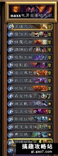 灵魂之火*2 力量的代价*2 死亡缠绕 麻疯侏儒*2 叫嚣的中士*2 烈焰小鬼*2 银色侍从*2 虚空行者*2 年轻的女祭司*2 飞刀杂耍者*2