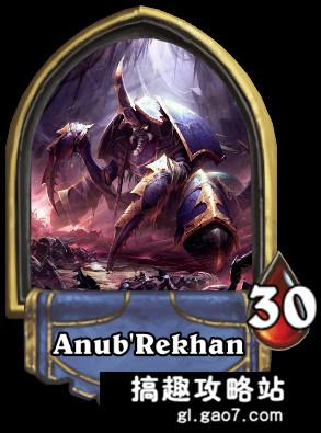 阿努布雷坎在英雄难度下每2费即可通过英雄技能召唤一个4/4的尼鲁布蛛魔来进行频繁铺场,可以使用T7猎在苟全前期的时候适量磨血,利用火车王加放狗森林狼的组合打伤害。也可以使用传统的巨人冰法,红龙阿莱克丝塔萨是对付首领的神器。