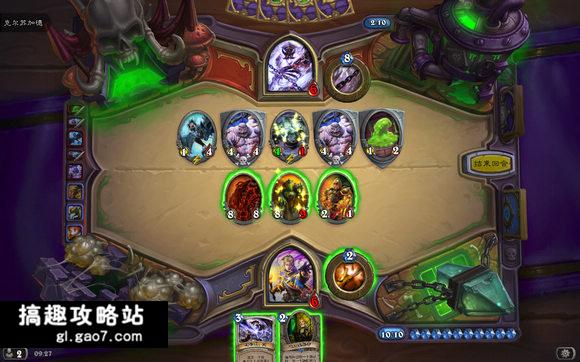 boss的亡语仆从是非常非常恶心的,不消灭则提供场攻,消灭则产生的鬼灵系列仆从每回合还能造成伤害。如何在战斗交换中处理好这些亡语仆从,是这次战斗的关键。