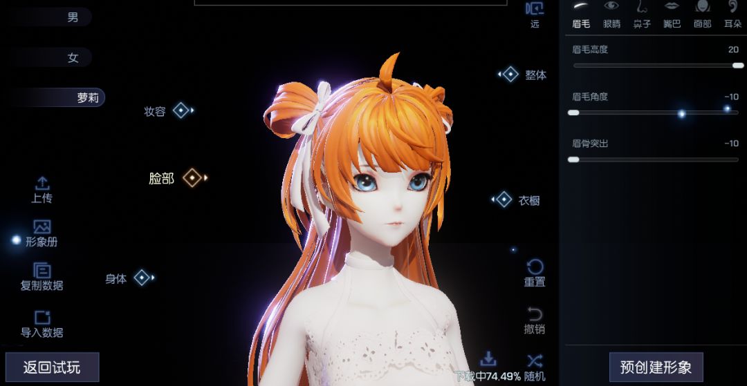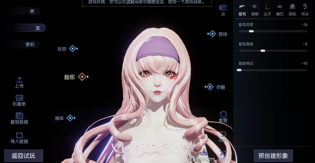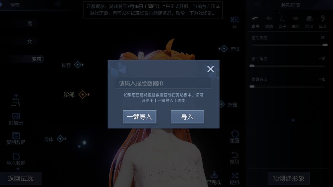 我们可以看到人物建模精致,每个细节玩家都能自己DIY,只要技术可以,捏一个同款明星都行。但不是人人都有这么高的技术,还好游戏中有个功能:捏脸数据导入。