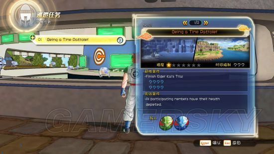 刚进入城市后的第一个任务,找到老界王神后,先和左边的[时间界王神]对话,可以进入战斗教学界面。下面挑几个笔者认为重点的部分加以说明。