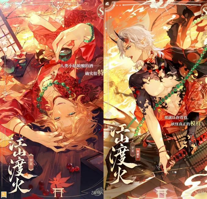 第三个是罗夏的江山渡火。在新卡中,罗夏醉倒在门边,脸上泛起几片红霞。他朝玩家伸出手喃喃自语,仿佛在请各位共饮一杯。许多玩家表示,这套卡还是觉醒前好看,觉醒后太一本正经,都不是大家熟悉的那个罗夏了。