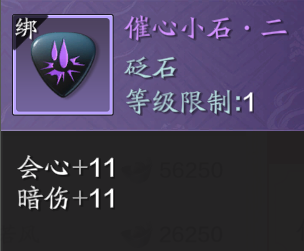 小石主要提供攻击属性,而在攻击属性中移花最看重暗伤,其次是会心,然后是攻击。因此在蓝色小石和紫色小石中推荐使用【催攻小石·一】和【催心小石·二】,前者提供暗伤,后者则提供会心及暗伤加成。