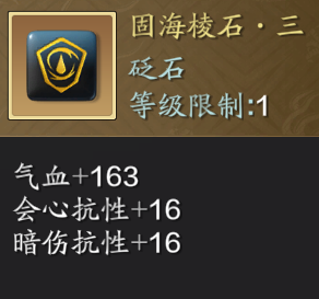 同样由于当前棱石的选择较少,【固海棱石】是永远滴神,如果实在没有【固海棱石】的话,蓝色棱石中则优先使用【气血棱石】。