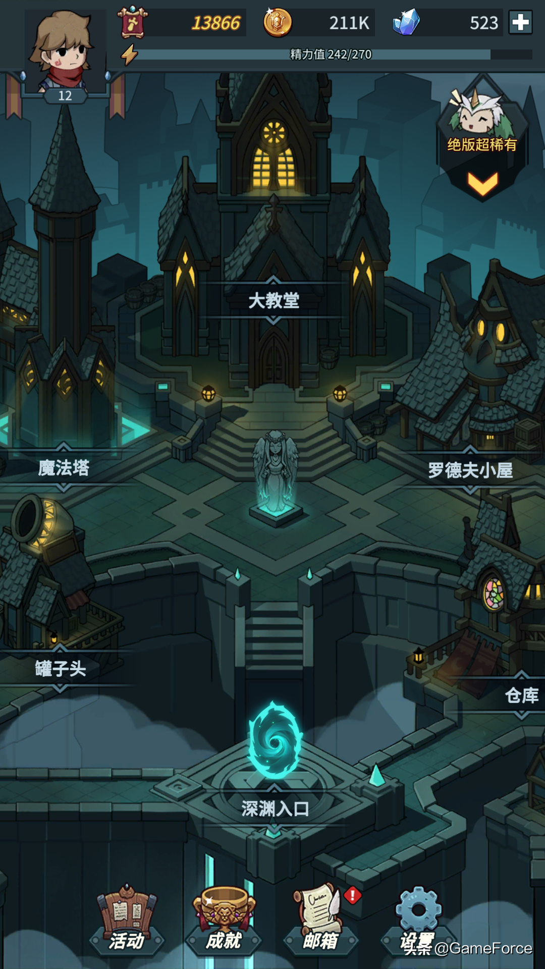 游戏的主城界面简单明了,最下方的深渊入口就是冒险开始的地方