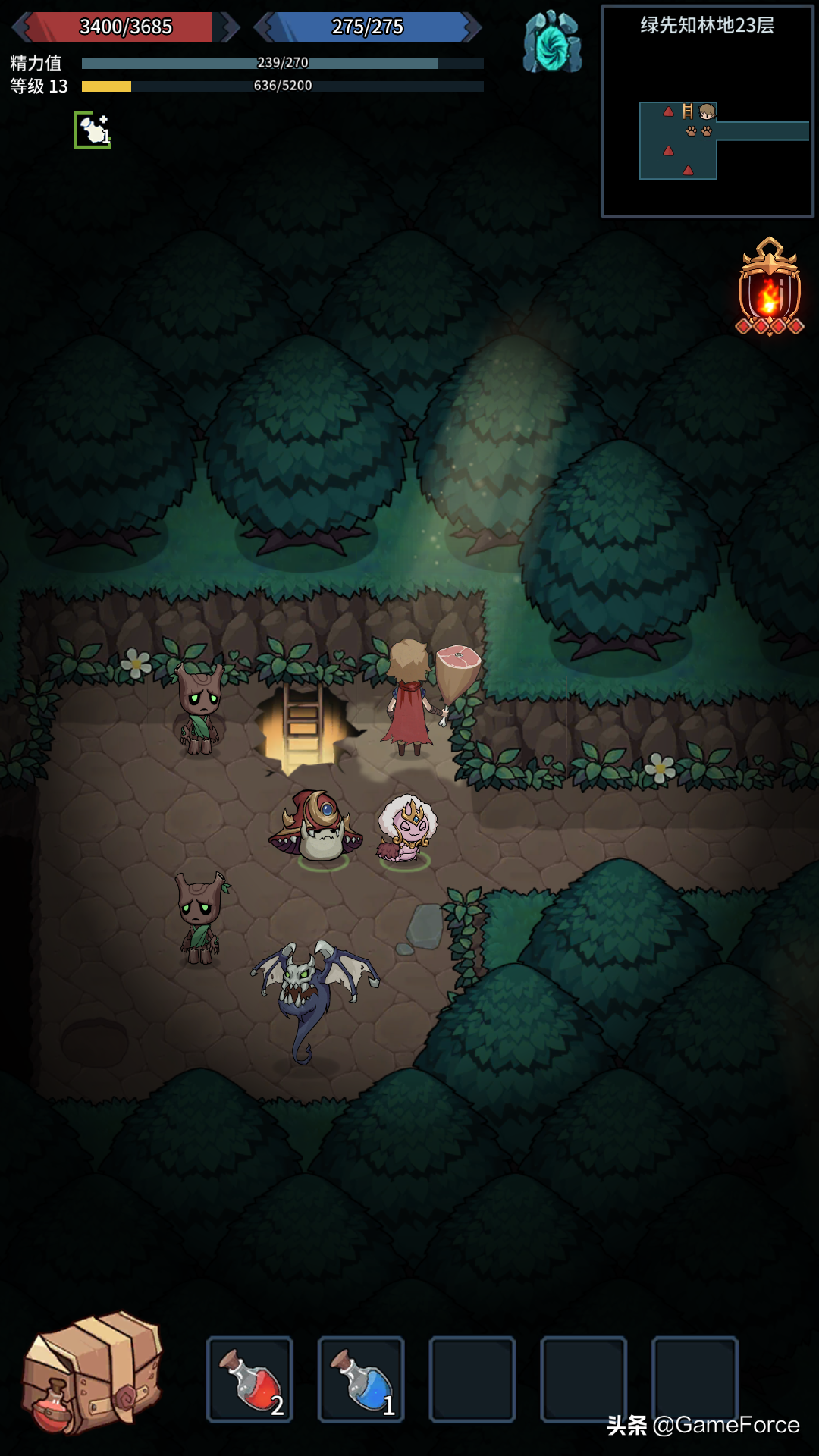 本作尽管上手简单,但绝非无脑冒险,后期随着敌人难度提升,玩家不仅要关注战力数值的简单提升,还要合理选择技能和契约兽,药水数量的控制也让玩家很难“喝死”敌人,遇上强敌打不过的话,可以带着装备直接传送回去,最多损失几层,整军备战提升能力后再次挑战即可