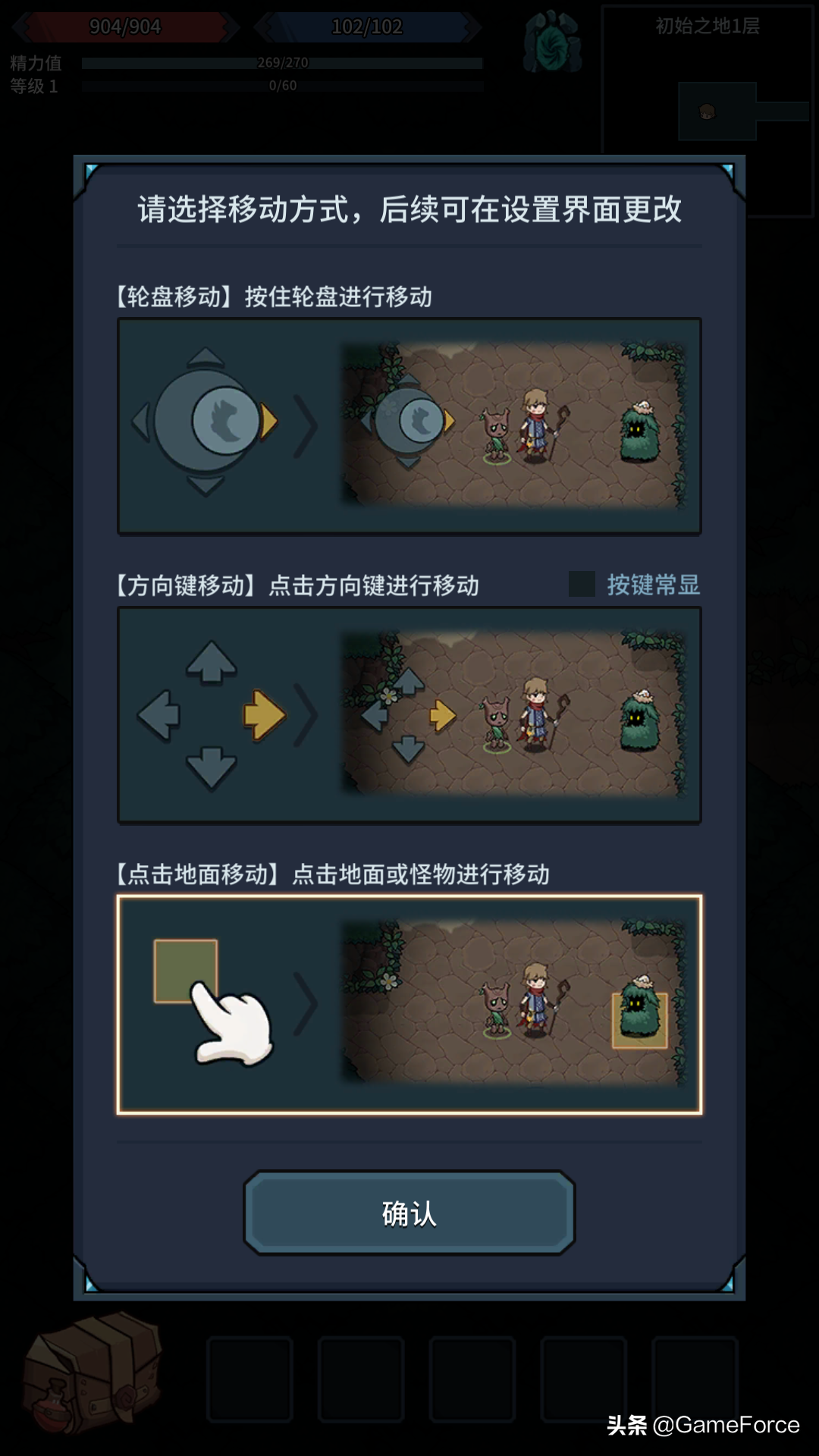 本作采用了简单的点击式操作,地下城世界均以方格形式展现,玩家可以选择使用虚拟摇杆或方向键移动,也可以点击目标自动移动。笔者在实际体验中发现:游戏并不需要实时战斗和回避,人物移动也是四方向设计,所以选择了点击移动方式,加上竖版画面设计,可以很轻松地单手游玩