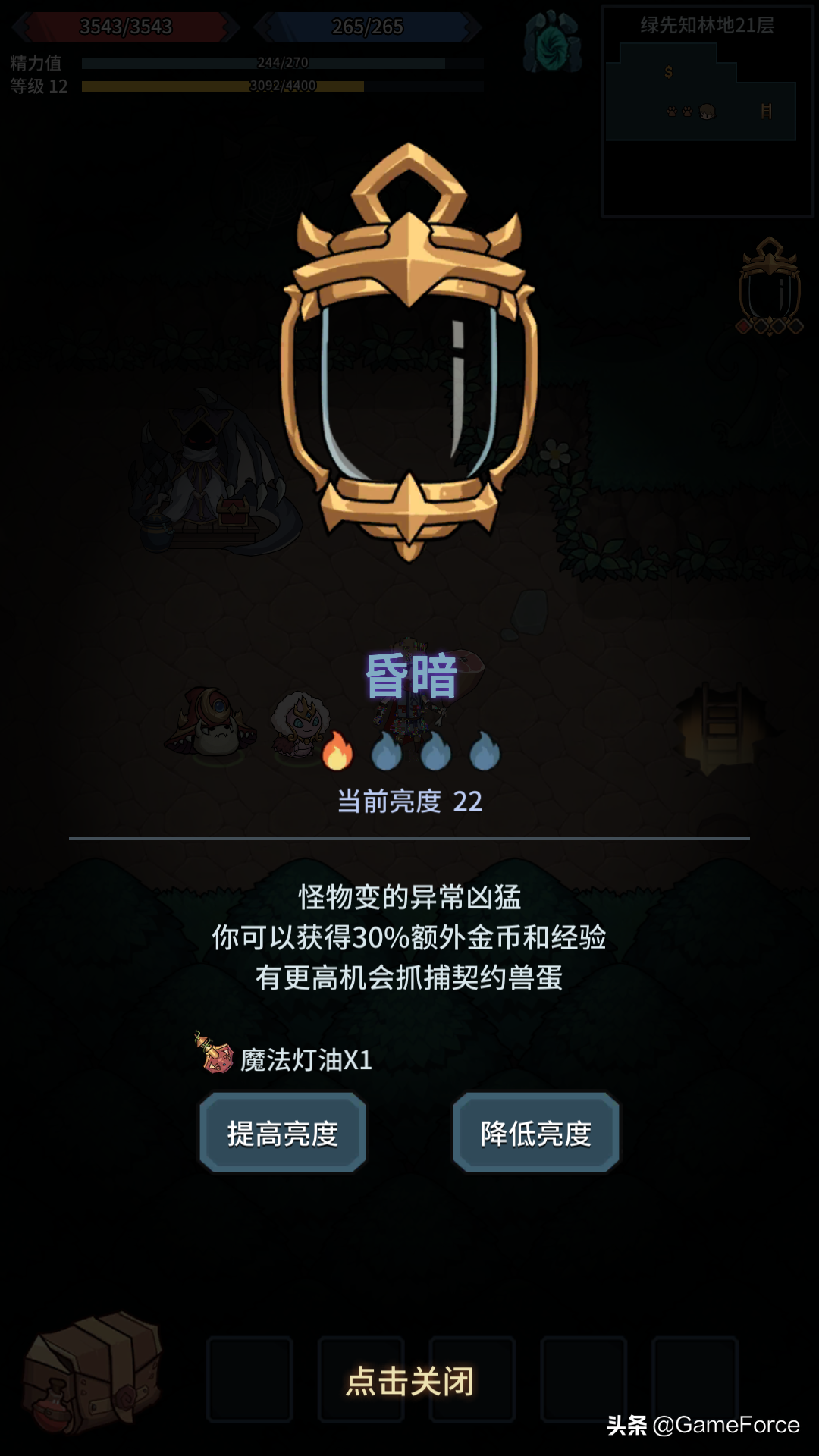 提灯亮度即将耗尽之时,怪物难度和战斗收益最高
