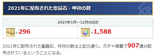 根据2021年方面fgo所有活动方面的汇总和统计,这一年日服一共发放了296张呼符,同时还有1588个圣晶石,把圣晶石的数量还有呼符的数量综合起来,折合成抽卡的数量,一共是907抽,注意因为fgo现在十连抽实际上是出货11张,所以这个抽卡数量实际上是非常合理而且靠谱的。