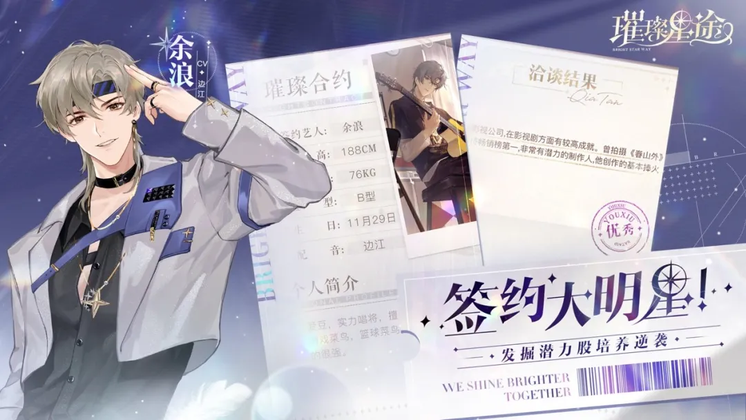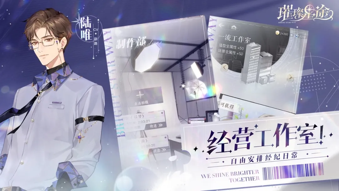 与市面上多数女性向游戏不同,《璀璨星途》与恋爱元素做了大胆切割,玩家扮演起一个以事业为重的经纪人角色。